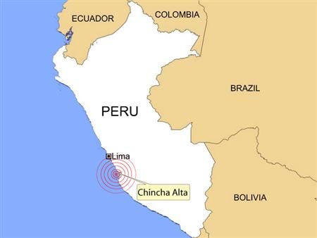 The highly respected Cable new station Canal N reported that a church in the city of Ica south of Lima collapsed, killing 17 people and injuring 70. The US Geological Survey said the 7.9 magnitude earthquake hit about 90 miles southeast of Lima at a depth of about 25 miles. The quake toppled houses and caused panic in the capital. A short and weaker aftershock followed. "At this time, there is no big or serious damage. Some houses have been knocked over, yes, as have some ceilings, but there are no direct victims," Luis Palomino, head of Peru's civil defense agency. Radio stations said there was a fire in one district of Lima and that several poorly constructed homes were knocked down in Pisco, a town near the epicenter of the quake. "I was playing soccer when the quake hit and I had to run back to my office because I am the chief of security. Now I am going to check on my family," said Juan Francisco Acevedo, 29, who works for an Internet company in Lima. Ambulance sirens blared in the darkened capital where windows of storefronts shattered and the health ministry declared a disaster. "People here hugging and crying in fear on the streets," said Cristyane Marusiak, a 31-year-old resident. The US Geological Survey at first said there were two earthquakes within minutes of each other but later amended its reports to show that one quake struck about 90 miles (145 km) southeast of Lima at a depth of around 25 miles (40 km). It was followed by nine aftershocks ranging in magnitude from 6 to the upper 4s, said Dale Grant, a geophysicist at the USGS's National Earthquake Information Center in Golden, Colorado. The USGS says earthquakes measuring more than 7 magnitude often result in fatalities. In neighboring Chile, officials said they saw no risk of a tsunami on its Pacific coastline. |