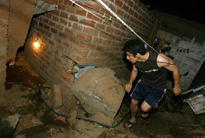 A man surveys the damage to his house after an earthquake struck in San Juan de Lurigancho district, August 15, 2007. [Reuters]