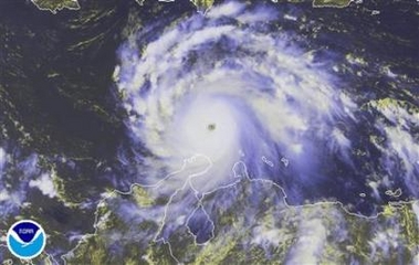 On a similar though more southerly track toward the Yucatan as last month's powerful Hurricane Dean, which killed 27 people, Felix's top sustained winds had increased to 140 mph (220 km per hour) by 5 pm EDT, the US National Hurricane Center said. That made the second hurricane of the 2007 Atlantic storm season, located around 440 miles southeast of the Jamaican capital, Kingston, a Category 4, or "major" hurricane capable of causing extensive damage. Forecasters at the Miami-based hurricane center said the storm was strengthening at one of the fastest rates seen, as measured by the drop in its minimum internal pressure. It would be passing over a warm eddy of water in the central Caribbean, finding in it the fuel needed to intensify further within 36 hours into a rare and potentially catastrophic Category 5 hurricane with winds over 155 mph (249 kph). "The official intensity forecast could be conservative and there is certainly the potential for us to have another Category Five hurricane on our hands before all is said and done," said hurricane center storm expert Richard Pasch. Hurricane Dean in mid-August became a Category 5 on the five-step Saffir-Simpson scale before slamming into the Yucatan. Such strong hurricanes have been rare in the past. Before the devastating 2005 hurricane season, only two years had seen more than one Category 5 hurricane. The 2005 season experienced four, including Katrina, Rita and Wilma. |