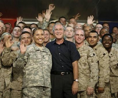 The president was joined by his war cabinet and military commanders at an unprecedented meeting in Iraq over eight hours at this dusty military base in the heart of Anbar province, 120 miles west of Baghdad. Bush did not say how large a troop withdrawal might be possible or whether it might occur before next spring when the first of the additional 30,000 troops he ordered to Iraq this year are to start coming home anyway. He emphasized that any cut would depend upon progress. After talks with Gen. David Petraeus, the US commandeer in Iraq, and Ambassador Ryan Crocker, Bush said they "tell me if the kind of success we are now seeing continues, it will be possible to maintain the same level of security with fewer American forces." Bush's trip was a dramatic move to steal the thunder from the Democratic Congress as it returns to Washington with fresh hopes of ending the unpopular war, now in its fifth year. Petraeus and Crocker will testify before lawmakers next week, and then Bush will announce how he intends to proceed in Iraq. On Air Force One after leaving Iraq, Bush acknowledged that his comment about troop reductions had piqued interest. "Maybe I was intending to do that," the president said, sitting around a table with reporters in his plane's conference room as he flew to Australia to meet with Asia-Pacific leaders. "If you look at my comments over the past eight months, it's gone from a security situation in the sense that we're either going to get out and there will be chaos, or more troops," the president said. "Now the situation has changed where I'm able to speculate on the hypothetical." Still, Bush struck a defiant note about demands for bringing troops home. Standing before troops cheering "hooah," Bush said decisions on force levels "will be based on a calm assessment by our military commanders on the conditions on the ground — not a nervous reaction by Washington politicians to poll results in the media. "In other words," Bush said, "when we begin to draw down troops from Iraq, it will be from a position of strength and success, not from a position of fear and failure." Once the stronghold of the Sunni Arab insurgency, Anbar province now is cited as a model for the rest of Iraq. Violence abated after Sunni tribal leaders and former insurgents broke with al-Qaida and teamed up with US troops to hunt down extremists. "Anbar is a huge province," Bush said. "It was once written off as lost. It is now one of the safest places in Iraq." Defense Secretary Robert Gates said it will take several months to assess whether security improvements across Iraq are sufficient to enable Bush to start withdrawing troops. He provided no details on Bush's thinking about the timing and scope of any reductions. "I am more optimistic than I have been at any time since I took this job," said Gates. Bush met with Iraqi Prime Minister Nouri al-Maliki and other top government officials from Baghdad. He urged the government to respond to progress in Anbar. He also met with Sunni tribal sheiks and members of Anbar's governing body. Bush spoke warmly about al-Maliki even while expressing frustration over the slow pace of political progress. "My message to Maliki is: `You've got a lot of work to do and whatever decision is made in Washington, D.C., is all aimed at helping you achieve what is necessary to get the work done.'" He said he addressed his comments to all the Iraqi leaders at the table but took al-Malki aside. "You're my friend and ... you've made progress in your recent meeting and now's the time to get these laws passed," Bush said he told al-Maliki, referring to a national oil revenue sharing measure and other legislation. "You've got hard work to do and you know what? He understands that." Al-Maliki, speaking before Bush's visit, said he expected Petraeus and Crocker to give his government a favorable assessment when they report to Congress. Virtually all of his war advisers joined Bush in Iraq, the first such meeting here. They included Gates, Secretary of State Condoleezza Rice, Gen. Peter Pace, chairman of the Joint Chiefs of Staff, Adm. William Fallon, the top US commander in the Middle East, National Security Adviser Stephen Hadley and Lt. Gen. Douglas Lute, Bush's "war czar." It was Bush's third secret trip to Iraq in four years. He slipped unnoticed out of the White House on Sunday evening and was driven to Andrews Air Force Base to board his plane. Only one other car accompanied him. Bush was to have left Monday morning for Australia. Bush urged Congress to wait until they hear from Crocker and Petraeus before judging the result of his decision to send 30,000 more troops to Iraq. "I urge members of both parties in Congress to listen to what they have to say," he said. "We shouldn't jump to conclusions until the general and the ambassador report." Bush said Monday's visit would have no impact on the mood in Congress. "I don't think a presidential visit will cause people to vote one way or another." Even Republicans are pressuring Bush on troop cuts. Republican Sen. John Warner surprised the White House by declaring over the summer congressional break that he wants some US troops to start coming home from Iraq by Christmas. He said he may support Democratic legislation ordering withdrawals if Bush refuses to set a return timetable soon. Anticipating criticism that Bush's trip was a media event to buttress support for his war strategy, the White House was ready to push back. "There are some people who might try to deride this trip as a photo opportunity," said White House deputy press secretary Dana Perino. "We wholeheartedly disagree." Hadley said Bush wanted to hear personally from commanders and from al-Maliki himself. "There is no substitute for sitting down, looking him in the eye, and having a conversation with him," Hadley said. "The president felt this is something he had to do in order to put himself in a position to make some important decisions." There are now 162,000 US t