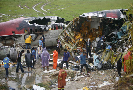 An unofficial list compiled by the Thai Foreign Ministry showed that among the dead were six Britons, three Israelis, two Americans, two French nationals, and one victim each from Australia, Germany, Iran, Ireland and Sweden. However, the list is incomplete as more than 30 foreign fatalities had not yet been positively identified. The budget One-Two-Go Airlines flight was carrying 123 passengers and seven crew from Bangkok to Phuket on Sunday when it skidded off the runway while landing in driving wind and rain, catching fire and engulfing some passengers in flames. Deputy Transport Minister Sansern Wongcha-um told reporters that 89 people, including 53 foreigners, were killed in the crash, and 41 others injured. According to a transcript of the conversation between the control tower and the plane, ground officials informed the Indonesian pilot, Arief Mulyadi, about wind shear at the airport but he decided to land anyway, the Air Transport Department's director-general, Chaisak Ungsuwan, said on The Nation TV channel. "The last word the pilot said was 'landing,"' he said. Wind shear refers to sudden changes in the wind along a plane's flight path which can result in a disastrous loss of lift on the wings. "We are still unable to say the cause of the accident," Transport Minister Theera Haocharoen said. "The officials have found the black boxes and will send them for analysis to the United States. Hopefully, we will learn in a few weeks the cause of the accident." Others suggested it could take a year to determine the cause. Kajit Habnanonda, president of Orient-Thai Airlines, which owns One-Two-Go, said wind shear could have been a factor. "It is possible that the plane crash was caused by wind shear," Kajit said, adding that heavy rains could have contributed to the plane skidding off the runway. |
