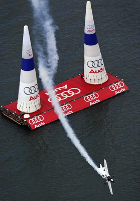 British pilot Paul Bonhomme of Team Matador flies during the elimination for the 9th stage of the Red Bull Air Race in San Diego September 22, 2007. [Reuters]