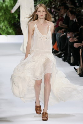 A model presents a creation by British designer Stella McCartney as part of her Spring/Summer 2008 ready-to-wear fashion collection in Paris October 4, 2007. [Agencies]