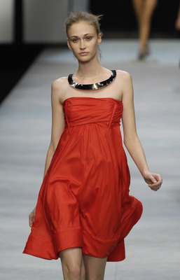 A model presents a creation by Croatian designer Ivana Omazic for Celine as part of her Spring/Summer 2008 ready-to-wear fashion collection in Paris, October 4, 2007. [Agencies]