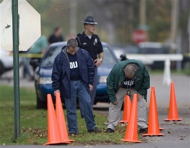 Tyler Peterson, 20, who later died after exchanging gunfire with law enforcement officers, had been in a relationship with one of the victims, authorities said at a news conference. "They were in a relationship for a few years," said Police Chief John Dennee. "They had broken up and gone back and forth." The rampage raised questions among residents of the remote northern Wisconsin community about how Peterson could have met requirements to become a law enforcement officer. No psychological testing was performed, but he had undergone other background checks and completed all required training by the state, authorities said. "We had no idea, obviously, that anything like this would ever occur," Dennee said. "Once we realized that he was our suspect, he was no longer a cop." Killed in the rampage were six people who were either students or graduates of Crandon High School. They were at the house to share pizza and watch movies during the school's homecoming weekend. After Peterson burst in, an argument ensued, officials said. He left to get his rifle, then forced his way back in and opened fire, said J.B. Van Hollen, the state's attorney general. Peterson fled and was later found at a residence in the nearby town of Argonne. In phone conversations with law enforcement after he fled, he identified himself as the shooter, officials said. Though he exchanged gunfire with officers, it was not clear how he was killed, Van Hollen said. An autopsy was being conducted Monday, and authorities hoped it would tell them more. The rifle used in the shootings is the type used by the sheriff's department, but investigators had not confirmed that the rifle he used came from law enforcement. Classes at the high school were canceled Monday, and about 100 people - mostly teens -f went to a local church to meet with counselors. Many walked in with their arms around each other for support; some were crying. The victims were identified as Jordanne Murray, Katrina McCorkle, Leanna Thomas, Aaron Smith, Lindsey Stahl and Bradley Schultz. Autopsies were scheduled to be completed Monday. The lone survivor, Charlie Neitzel, 21, was upgraded to serious condition and was improving Monday at St. Joseph's Hospital, hospital spokeswoman Karla David said. Schultz, 20, was a third-year criminal justice major at the University of Wisconsin-Milwaukee who hoped to be a homicide detective, said an aunt, Rose Gerow. He was home visiting friends and appeared to have died trying to protect one, said another aunt, Sharon Pisarek. "We still don't have many details, but from what they've told us, there was a girl next to him and he was covering her, protecting her," Pisarek said, sobbing. "He was loved by everybody. He was everybody's son. Senseless." Murray loved children and hoped to be a daycare provider, said Sally Maxon, whose daughter had been best friends with Murray since they were in kindergarten. "She's a very, very wonderful person, the nicest girl you'd ever want to meet," said Maxon, who described her daughter as a nervous wreck after the shootings. In a statement read by Praise Chapel Community Church Bill Farr, the deputy's family reached out the victim's families, saying they felt "a tremendous amount of guilt and shame for the acts Tyler committed." "We may never receive the answers we all seek," they said. "Like those close to Tyler we are in shock and disbelief that he would do such terrible things. This was not the Tyler we knew and loved." The town of about 2,000 people made headlines in August, when community groups and a soldier helped bring an Iraqi girl to the United States for a cornea transplant. Mayor Gary Bradley pleaded Monday for support to help the town begin to heal. "This is something we have to put back together," he said. |