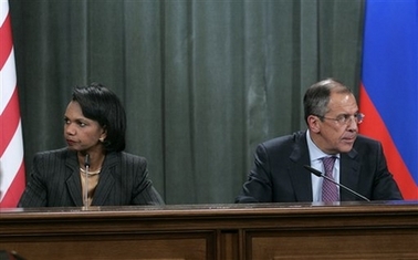 Putin set the tone early on when he hosted Rice and Gates and their Russian counterparts at his country home outside Moscow and delivered a stern rebuff to US plans to push ahead with establishing missile defense facilities in Poland and the Czech Republic. In combative comments that took the US side aback during a photo session, Putin criticized Bush's pet project and threatened to pull out of a Cold War-era treaty that limits intermediate-range missiles. "We may decide someday to put missile defense systems on the moon, but before we get to that we may lose a chance for agreement because of you implementing your own plans," he told Rice and Gates in Russian, according to an Associated Press translation. "We hope that in the process of such complex and multifaceted talks you will not be forcing forward your previous agreements with eastern European countries," Putin said. The United States has repeatedly rejected Russian demands to freeze US negotiations with Poland and the Czech Republic and Rice did so again Friday, said three senior US officials present at the sessions with Rice, Gates, Russian Foreign Minister Sergey Lavrov and Defense Minister Anatoly Serdyukov. The officials, who spoke on condition of anonymity to describe diplomatic discussions, maintained that differences were narrowed but progress was incremental and might not produce ultimate understandings. "I agree that we did not agree on anything today," one official told reporters. He added quickly that neither Washington nor Moscow had expected significant breakthroughs. Rice and Lavrov announced at a news conference after the meetings that the two sides would meet again in Washington in six months to review a "strategic framework" on evaluating and addressing the missile threat posed by rogue states, principally Iran. The US proposals are intended to ease fears that its missile defense plans threaten Russia's nuclear deterrent and include the creation of a so-called "joint regional missile defense architecture" that would protect the United States, NATO allies in Europe and Russia. As part of that scheme, experts from all nations covered by the system would be based at missile defense facilities to try to improve coordination and transparency. A spokesman for Putin, Dmitry Peskov, told reporters in a conference call that "some of them are quite interesting and the Russian side will start examining this proposal." But, he stressed: "It will take some time before we are able to make public our estimation." Initial reaction from Lavrov and Serdyukov, though, was less gracious. "We see two serious problems with these proposals," Lavrov told reporters at the news conference with Rice, Gates and Serdyukov. He said the two sides still disagree about the threat to Europe and complained that the negotiations with the Poles and Czechs were continuing. |