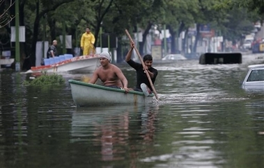 People evacuate a flooded area in Villahermosa in Mexico's Gulf coast, Friday, November 2, 2007. Hundreds of thousands of Mexicans fled the flooded region of the swampy Gulf coast Friday. [Agencies]