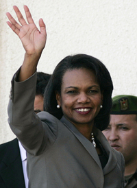 "My reaction is that the positive element here, that the elections are going to be held very soon, and also that the president said he was going to take off his uniform, these have both been essential to getting Pakistan back on a democratic path, " Rice said in an interview with the ABC television. "Obviously, we are also encouraging that the state of emergency has got to be lifted, and lifted as soon as possible," Rice said. Earlier Sunday, Musharraf said in Islamabad that general elections including the national assembly and the provincial assemblies would be held simultaneously before January 9. However, Musharraf refused to give a date as when to lift the state of emergency imposed on November 3. Related Stories: Musharraf: General elections to be held by Jan 9 |