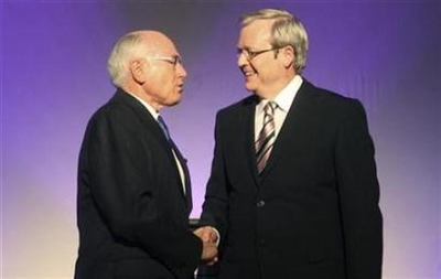Updated: 2007-11-13 10:27 MELBOURNE - More Australian voters would like to see Labor Opposition leader Kevin Rudd naked than their current prime minister, John Howard, a poll showed on Sunday just two weeks out from a hard-fought general election. The question was posed in a Galaxy poll of 1,200 voters and published in Zoo magazine, the Australian Associated Press reported. The survey found 34 percent of respondents wanted to see Rudd, 50, with his gear off, more than double the 16 percent who said the same thing about Howard, 68. Even Howard's usually strong following among the over 50s slipped, with the poll showing just 16 percent wanted to see him naked compared with 27 percent for Rudd. "No one wants a prime minister who doesn't look good naked," Zoo editor Paul Merrill was quoted as saying. More conventional polls have consistently shown Howard's conservative government trailing well behind Labor, although the gap has narrowed slightly ahead of the November 24 general election. |