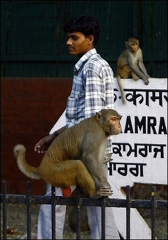 Updated: 2007-11-13 19:36 NEW DELHI - Just weeks after the Indian capital's deputy mayor toppled to his death fighting off a pack of monkeys, the animals are back on the attack, sparking fresh concerns about the simian menace.