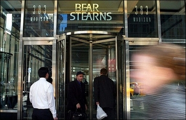 Pedestrians walk outside the headquarters of Bear Stearns in New York City. Bear Stearns said Wednesday it had slashed its exposure to the US subprime credit crisis and would write off some 1.2 billion dollars in the fourth quarter in mortgage-related investments. [Agencies] |