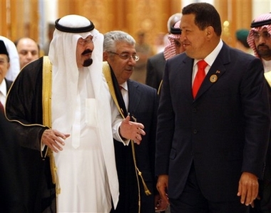The summit of Organization of Petroleum Exporting Countries opened Saturday in Saudi Arabia, with heads of states and delegates from 12 of the world's biggest oil-producing nations. Chavez warned that the US should not target OPEC members for foreign policy reasons. "If the United States attempts the madness of invading Iran or attacking Venezuela again, the price of oil is probably going to reach $200, not just $100," Chavez said. While Iran has been in a standoff with the US over its nuclear program, left-wing Chavez is a bitter antagonist of President Bush. "We are witnessing constant threats against Iran. I think OPEC should strengthen itself in this capacity and demand respect for the sovereignty of our nations, if the developed world wants a guaranteed supply of oil." Minutes after Chavez declared that the OPEC should "assert itself as an active political agent," Saudi King Abdullah appeared to rebuke the Venezuelan, insisting that "OPEC has always acted moderately and wisely." "Oil shouldn't be a tool for conflict, it should be a tool for development," said the king, a close US ally whose country is the world's largest oil producer. It was the third full OPEC summit since the organization was created in 1960. The run-up to the meeting was dominated by speculation over whether OPEC would raise production following recent oil price increases that have closed in on $100. US Energy Secretary Samuel Bodman called on OPEC to increase production earlier this week, but cartel officials have said they will hold off any decision until the group meets next month in Abu Dhabi, United Arab Emirates. They have also cast doubt on the effect any output hike would have on oil prices, saying the recent rise has been driven by the falling dollar and financial speculation by investment funds, rather than any supply shortage. Saudi Arabia opposed a move by Iran on Friday to have OPEC include concerns over the falling dollar included in the summit's closing statement after the weekend meeting. |
