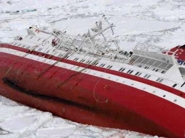 The M/S Explorer cruise ship sinks hours after hitting an iceberg off the coast of the Antarctic, in this photo released by the Chilean Army November 23, 2007. More than 150 passengers and crew escaped unhurt after the M/S Explorer hit ice in the Antarctic and started sinking on Friday, the ship's owner and coast guard officials said. [Agencies]