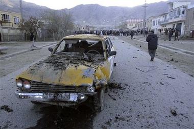 The blast was the third suicide attack in the city in the last eight days. It follows a similar attack against a NATO convoy on Tuesday that left 22 civilians wounded. Local resident Amir Mohammad said he helped load the bodies of the six slain Afghan soldiers into ambulances. Mohammad Amin, who runs a bakery close to the blast site, said two of his employees were wounded by flying glass. "Every day this bus stops in front of my bakery to take employees of defense ministry," Amin said. "Suddenly today a very strong explosion hit the bus." At least 13 civilians were wounded in the attack, according to Fahim, the health ministry spokesman. |
