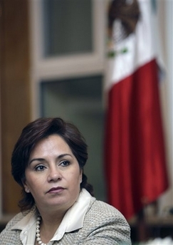 Mexico's Foreign Relations Secretary Patricia Espinosa looks on during a press conference at the Mexican Embassy in Beijing, Nov, 23, 2007. [Agencies]