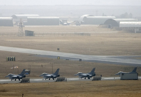Turkish F-16 jets prepare to take off from military airbase, in the southeastern Turkish city of Diyarbakir in this November 7, 2007 file picture. [Xinhua]