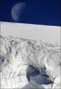 The moon is seen here in this file photo above the "Feegletscher" (Fairy Glacier), near the ski resort of Saas-Fee, in Switzerland. A small group of US experts stubbornly insist that, contrary to what the vast majority of their colleagues believe, humans may not be responsible for the warming of the planet Earth. [Agencies]