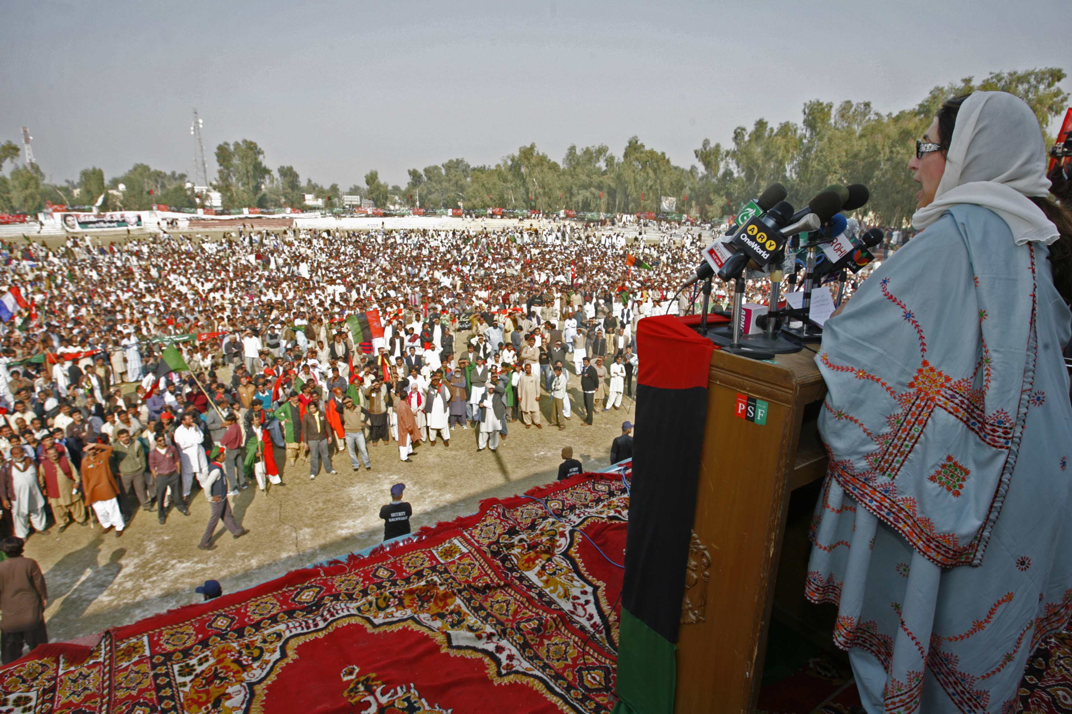 | Former Pakistani prime minister Benazir Bhutto addresses an election rally in the central Pakistan district of Rahim Yar Khan in this December 24, 2007 file photo. Bhutto was killed in a gun and bomb attack after a rally in the city of Rawalpindi on December 27, 2007, her party said. [Agencies] |