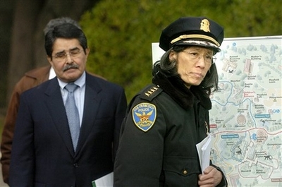 Police Chief Heather Fong discusses a Christmas Day tiger attack at the San Francisco Zoo during a news conference Thursday, Dec. 27, 2007, in San Francisco. At left is zoo director Manuel Mollinedo. Tatiana, a Siberian tiger, escaped from its enclosure and attacked three people, killing one, before police killed it. [Agencies]