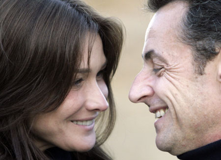 France's President Nicolas Sarkozy and his new girlfriend, Carla Bruni, smile as they gaze at each other during a visit to the Giza pyramids in Cairo, December 30, 2007. Singer and former super model Carla Bruni is living a true love story with French President Nicolas Sarkozy, her mother told a newspaper on Sunday. [Agencies]