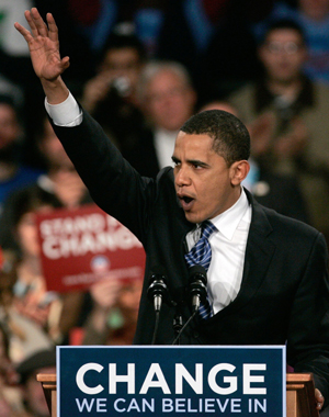 ![]() Democratic presidential candidate Senator Barack Obama speaks to supporters after winning the Iowa caucus in Des Moines, Iowa January 3, 2008. [Agencies] |