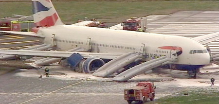 A video grab image shows a British Airways plane that made an emergency landing at Heathrow Airport, in London January 17, 2008. A British Airways plane on a flight from China made an emergency landing at London's Heathrow Airport on Thursday, officials said. [Agencies]