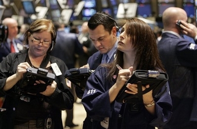 Traders work on the floor of the New York Stock Exchange Wednesday Jan. 23, 2008. Stocks fell in another rocky opening Wednesday, with investors uneasy about the health of the economy and corporate earnings after disappointing reports from big names like Apple Inc. and Motorola Inc. [Agencies]