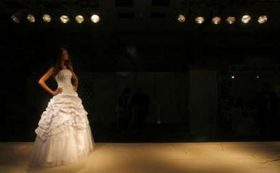 A model presents a bridal outfit during a wedding fair in Bucharest January 25, 2008. [Agencies]