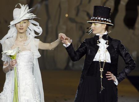 Models present creations during a Rome Fashion Week Haute Couture Spring/Summer 2008 show by Italian design house Gattinoni January 27, 2008. [Agencies]