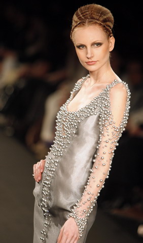 A model presents a creation by Italian design house Fausto Sarli during a Rome Fashion Week Haute Couture Spring/Summer 2008 show January 27, 2008. [Agencies]