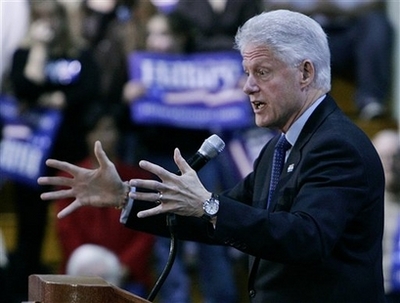 Former US President Bill Clinton speaks at a rally Tuesday, January 29, 2008, in Blackwood, N.J., on behalf of his wife, Democratic presidential hopeful Sen. Hillary Rodham Clinton, D-N.Y. [Agencies]