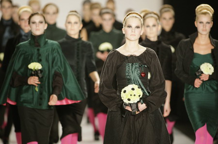 Models wear creations by fashion designer Lac Et Mel during the Berlin Fashion Week January 31, 2008. [Agencies]