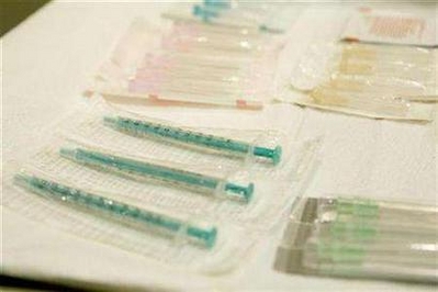 Assorted syringes are seen on a platter at a walk-in Botox salon in New York July 17, 2007. [Agencies]