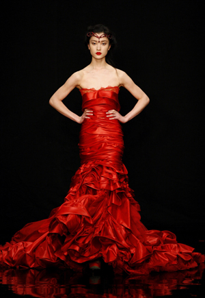 A model displays a creation by Jenny Packham during her Autumn/Winter 2008 show at London Fashion Week February 14, 2008. [Agencies]