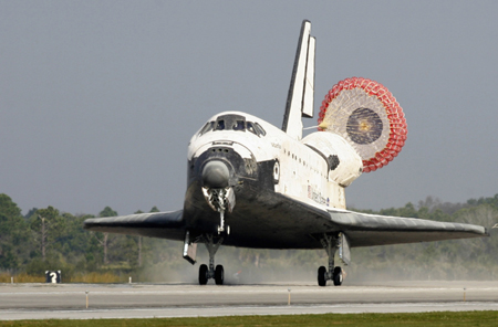 The space shuttle Atlantis lands at the Kennedy Space Center in Cape Canaveral, Florida February 20, 2008. The shuttle returned from a 13-day mission to the International Space Station. [Agencies]