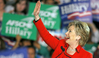 US Democratic presidential candidate Senator Hillary Clinton (D-NY) waves to supporters at her Ohio primary election night rally in Columbus, Ohio March 4, 2008. [Agencies]