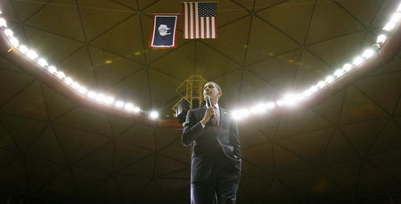 US Democratic presidential candidate and Senator Barack Obama (D-IL) speaks in Laramie, Wyoming, March 7, 2008. [Agencies]