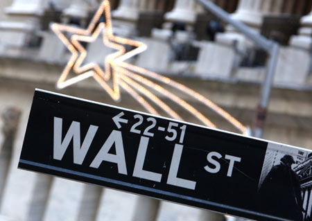 A street sign is seen on Wall Street outside the New York Stock Exchange York Jan. 18, 2008. Wall Street tumbled but off the worst level Friday, as investors worried that a plan to ease a liquidity crisis at Bear Stearns indicates severe credit troubles. [Xinhua]