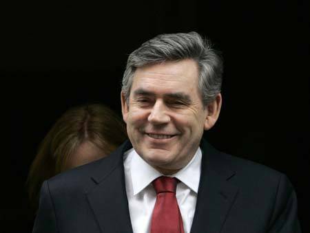 Britain's Prime Minister Gordon Brown leaves 10 Downing Street before the Chancellor's first budget announcement to the House of Commons in central London March 12, 2008. [Agencies]