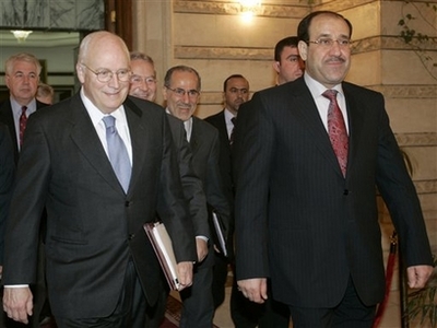 Cheney, who arrived in Baghdad in the morning on an unannounced visit, met Iraqi Prime Minister Nuri al-Maliki and other Iraqi political figures.