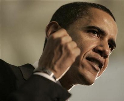 Democratic presidential candidate Senator Barack Obama speaks during a town hall meeting at the Community College of Beaver County in Monaca, Pennsylvania March 17, 2008. [Agencies]
