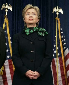 Democratic presidential candidate Senator Hillary Clinton (D-NY) waits to deliver a campaign speech on the war in Iraq at George Washington University in Washington, March 17, 2008. [Agencies]