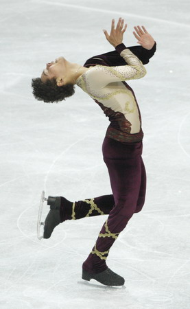 Switzerland's Jamal Othman performs during the men's short programme at the World Figure Skating Championships in Gothenburg March 21, 2008. [Agencies]