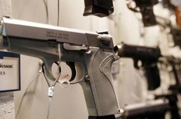 A Smith and Wesson 9mm handgun sits on display at the 132nd Annual National Rifle Association Meeting in in Orlando, Florida April 27, 2003. [Agencies]