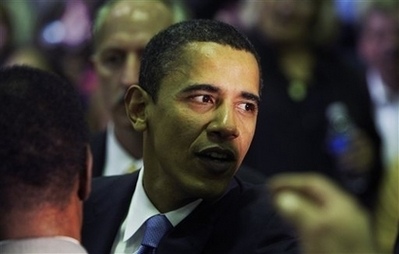 Democratic presidential hopeful, Sen. Barack Obama D-Ill., shakes hands after a town hall meeting at Terre Haute North Vigo High School in Terre Haute, Ind., Friday, April 11, 2008. [Agencies]