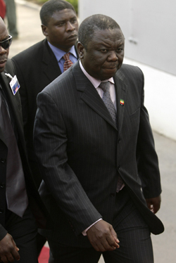 Movement for Democratic Change (MDC) leader Morgan Tsvangirai looks on during the (SADC) summit to discuss rising fears of bloodshed over delayed Zimbabwean election results in Lusaka,April 12,2008. [Agencies]