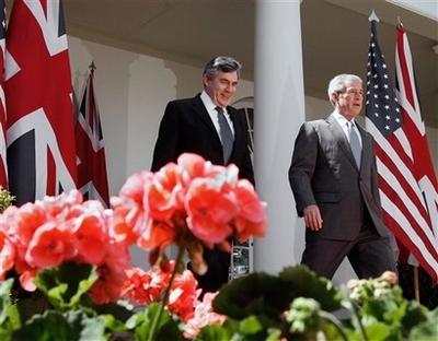 "As Tony Blair said, we stand shoulder-to-shoulder with the American people and with President Bush," Brown said. "And I continue to stand shoulder-to-shoulder with him in rooting out terrorism wherever we find it in any part of the world which puts freedom, democracy and justice at risk."