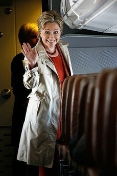 Democratic presidential hopeful Hillary Clinton waves to photographers on her plane as she flies to Indianapolis, Indiana, for more campaigning after her primary win in Pennsylvania. The longest nomination race in US presidential history has moved on to a new and unlikely key battleground -- the oft-ignored midwestern state of Indiana. [Agencies]
