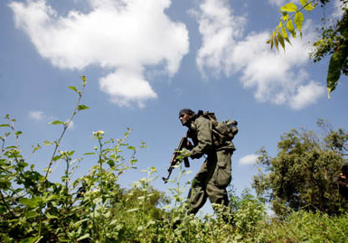 A Sri Lankan army soldier takes part in an operation to regain territory from the Tamil rebels in Jaffna, about 396 kilometers (246 miles) north of Colombo, April 6, 2008. [Agencies]