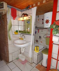 Undated police handout picture made available April 28, 2008, shows the bathroom in the basement of a house where a woman was held imprisoned for 24 years in the small Austrian village of Amstetten. [Agencies]